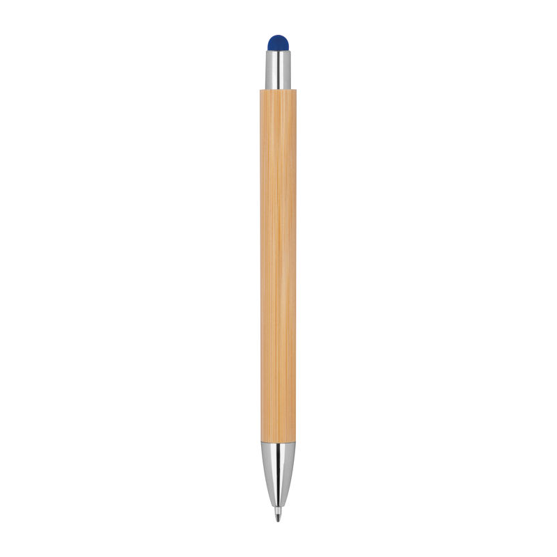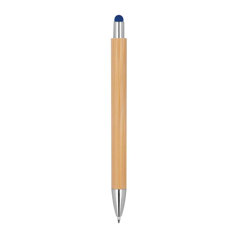 Set de scris din bambus compus dintr-un pix cu mină albastră si un pix roller cu accesorii argintii și colorate. Setul vine in carton ecologic.