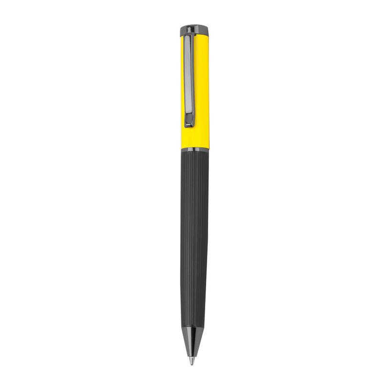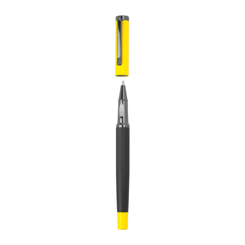Set de scris din metal cu cerneală albastră, format dintr-un pix (lungime de scriere 800 m) și stilou roller (lungime de scriere 500 m) într-o cutie pliabilă în culori asortate.
