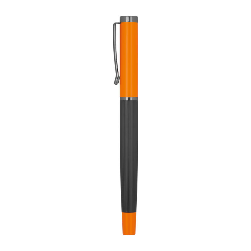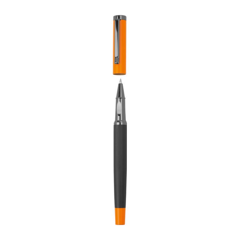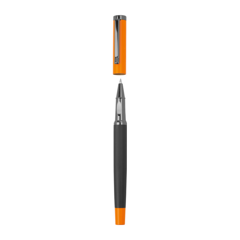 Set de scris din metal cu cerneală albastră, format dintr-un pix (lungime de scriere 800 m) și stilou roller (lungime de scriere 500 m) într-o cutie pliabilă în culori asortate.