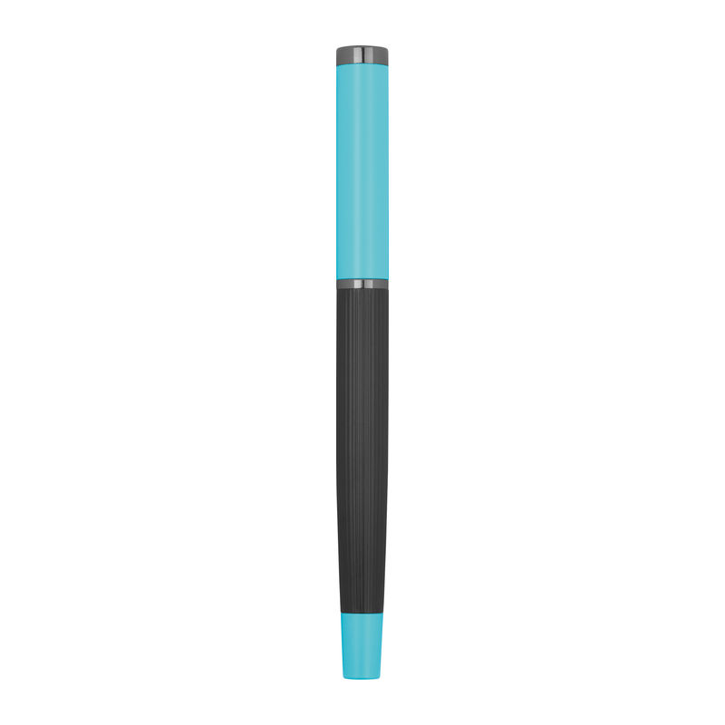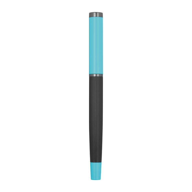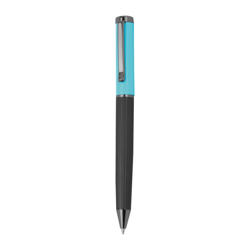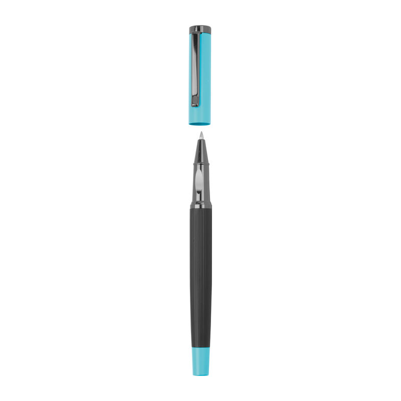 Set de scris din metal cu cerneală albastră, format dintr-un pix (lungime de scriere 800 m) și stilou roller (lungime de scriere 500 m) într-o cutie pliabilă în culori asortate.