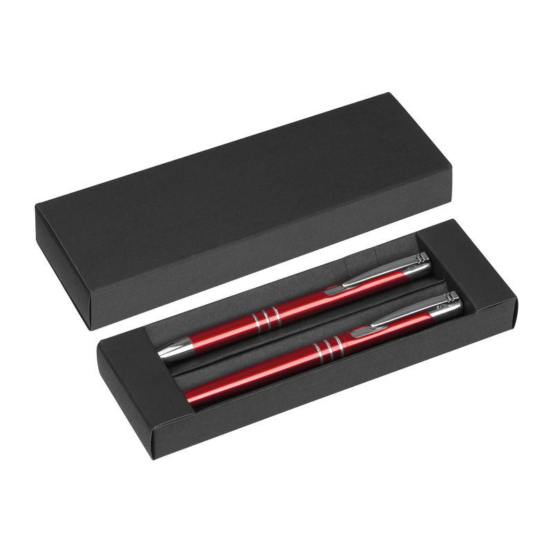 Set de scris din aluminiu, format dintr-un pix cu mină albastră şi un pix Roller.