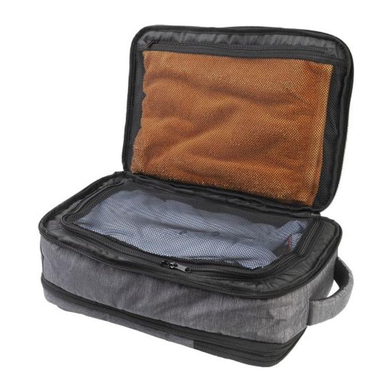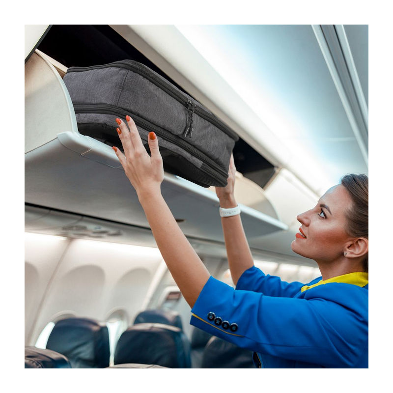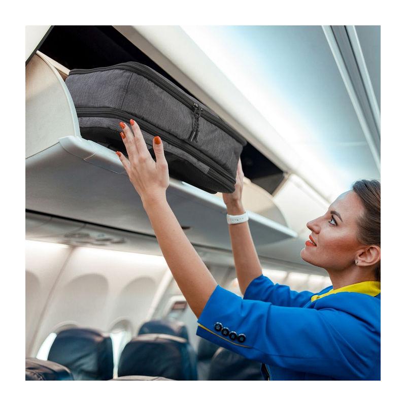 Schwarzwolf travel backpack in a grey color. The backpack is interesting because it resembles a travel suitcase in composition and is suitable as carry-on luggage on board a plane. It has an internal compartment that includes a large mesh pocket zipper and mesh pocket with zipper. The exterior of the backpack includes a front zippered pocket, a zippered laptop pocket on the back of the backpack, an expandable zipper that increases a capacity of the backpack and a strap to attach to the suitcase. The backpack has a padded back system and shoulder straps. Features a grab loop. From 300 pieces, we now offer you the possibility of custom-made production in the color of your choice and also with pulls or inner lining with your logo.