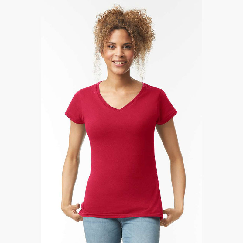 153.0 G/SqM (White 144.0 G/SqM). 100% Ring Spun Cotton. Fitted silhouette with side seam. High stitch density for smoother printing surface. 1.3 cms mitered v-neck collar. Taped neck and shoulders. Tearaway label. Twin needle sleeve and bottom hems.