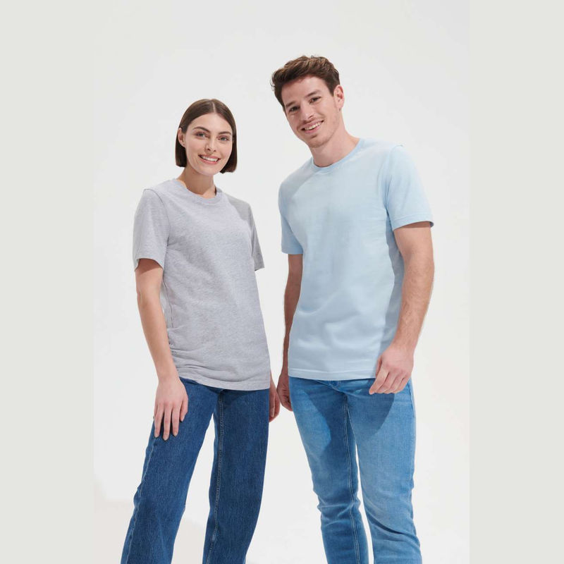 Quality: Jersey 150 , 100% combed ringspun cotton , Style: Neck tape , Ribbed round neck , Short sleeves , Cut and sewn , Comfortable fit ,