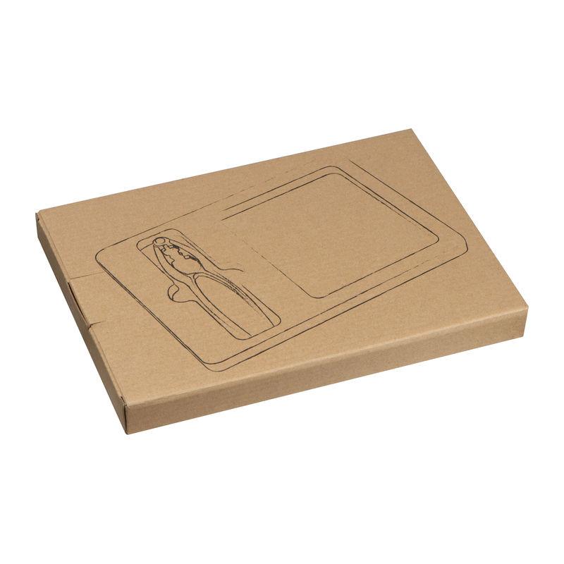 Spărgător de nuci metalic, practic, în tăviţă din bambus și o nișă pentru coji.