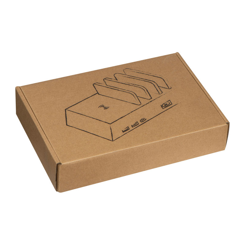Staţie de încărcare pentru chiar 4 dispozitive. Fabricat din bambus, 2 porturi USB și un port USB-C respectiv un cablu de încărcare.