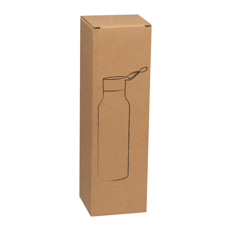 Sticlă de băut din metal cu capac din silicon, suport pentru fixare pe curea și o capacitate de 600 ml.
