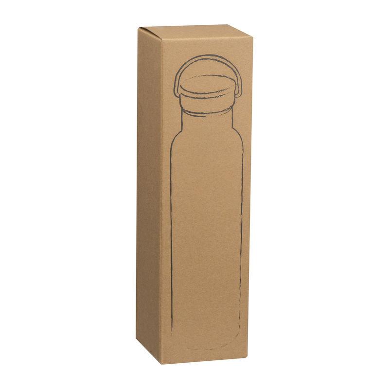 Sticlă termos cu perete dublu din oţel inoxidabil, cu dop din bambus, mâner de transport și o capacitate de 1.000 ml.