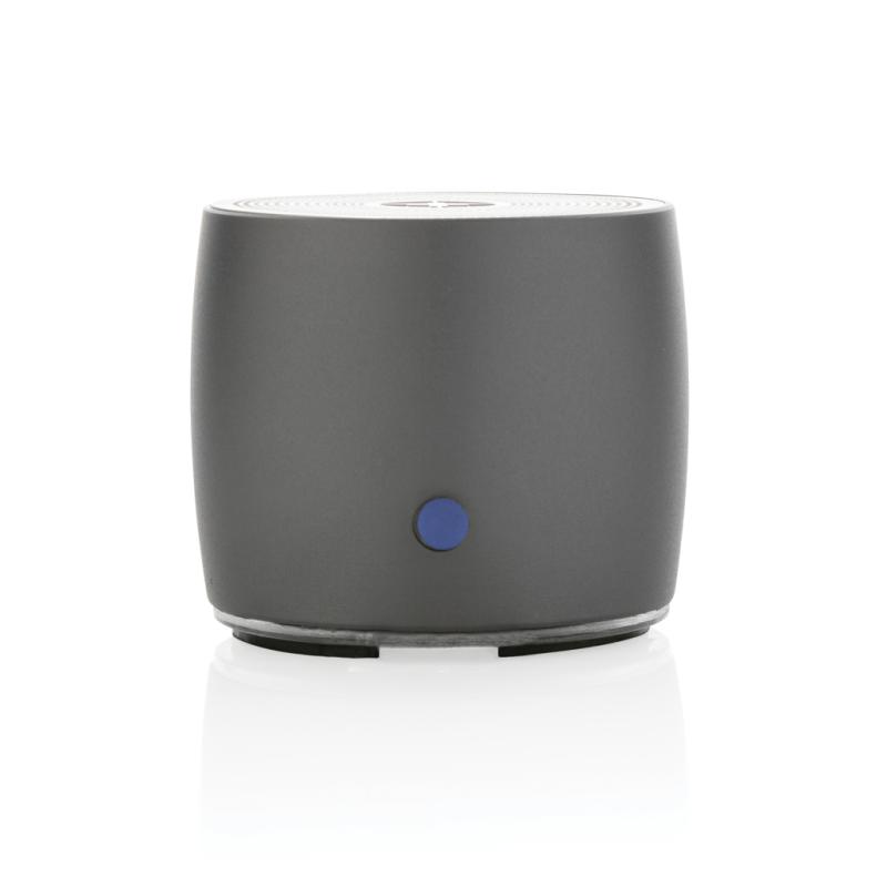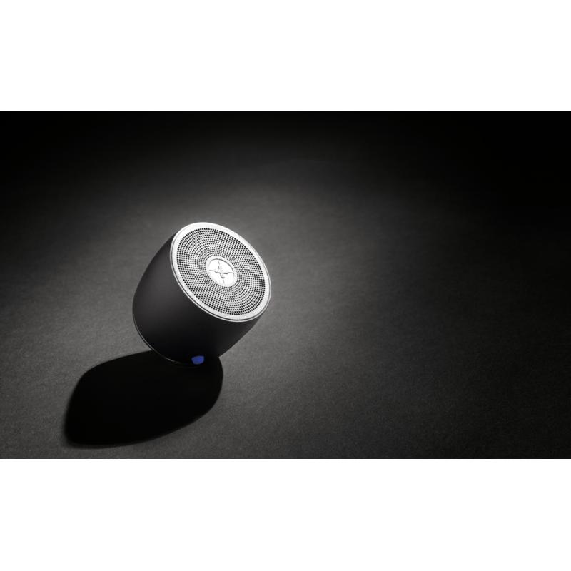 Small but powerful 3W wireless speaker made with RCS (Recycled Claim Standard) certified recycled aluminum and recycled ABS. Total recycled content: 28% based on total item weight. RCS certification ensures a completely certified supply chain of the recycled materials. Aluminum does not lose its characteristics in the recycling process and can be recycled endlessly. Including recycled type C charging cable made from RCS certified recycled TPE. Packed in FSC® mix packaging. The 500 mah battery allows a playtime up to 4 hours and can be fully re-charged in 2 hours. With BT 5.0 for smooth connection up to 10 metres. Item and accessories PVC free.