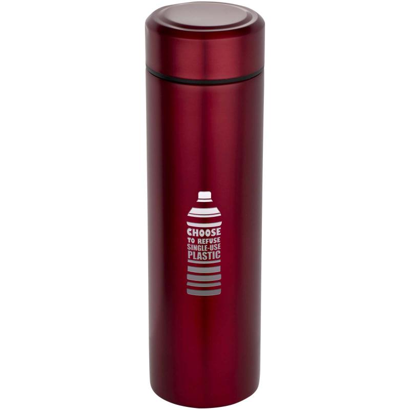 Crafted from double-wall, vacuum-insulated stainless steel, this flask keeps drinks cold for 24 hours or hot for 12 hours and includes a removable tea strainer for added convenience. With a 450 ml capacity and a leak-proof design, it is ideal for everyday use or travel.