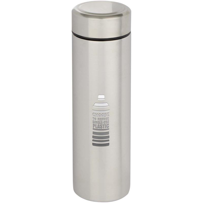 Crafted from double-wall, vacuum-insulated stainless steel, this flask keeps drinks cold for 24 hours or hot for 12 hours and includes a removable tea strainer for added convenience. With a 450 ml capacity and a leak-proof design, it is ideal for everyday use or travel.