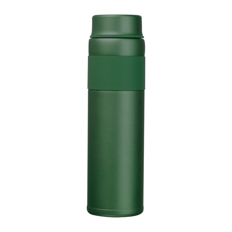 Sticlă din oțel inoxidabil cu perete dublu cu vacuum, capacitate 600 ml, cu bandă PU ergonomică pentru prindere confortabilă.
