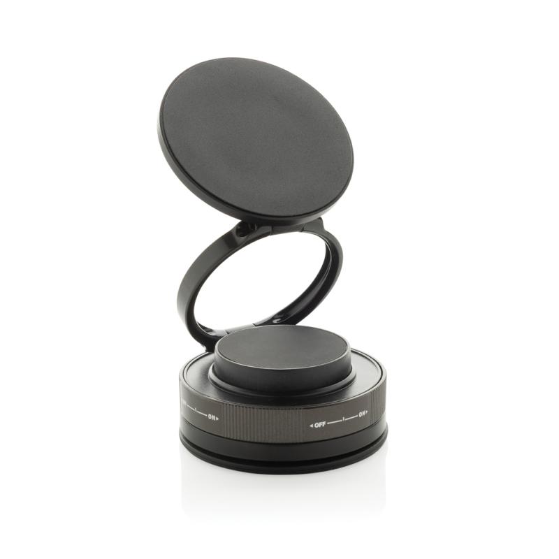 360° Magnetic Universal Phone Holder in RCS Recycled Plastic. This powerful and flexible phone holder is designed to keep your device secure and perfectly positioned—wherever you need it. With full 360-degree rotation, ultra-strong magnetic adhesion, and a suction power of up to 84N, it offers unmatched stability and convenience. Whether on your desk, in the car, kitchen, or bathroom, this universal holder mounts effortlessly, making it ideal for hands-free calls, content viewing, or simply keeping your phone within reach. The sleek design combines function and versatility in any environment. Made out of RCS certified recycled materials, including recycled PC, ABS, and TPU. RCS (Recycled Claim Standard) is a standard to verify the recycled content of a product throughout the whole supply chain. Total recycled content: 57% based on total item weight. PVC-free and packed in FSC® packaging.