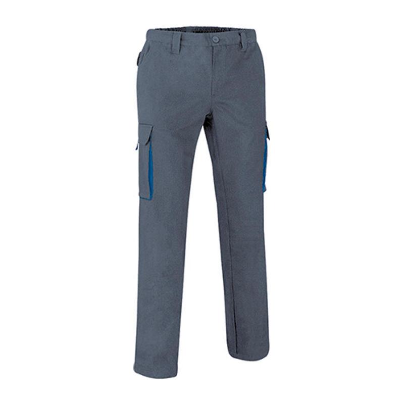 65% polyester, 35% cotton, 240 grs/m² twill fabric. Elastic waist in back . 2 waist pockets, 2 back flap pockets, 2 cargo lateral pockets. Button and zipper closure. Reinforced seams. Match with set Thunder (polo shirt, sweatshirt, vest). 20 units per box: 1 size, 1 color. Individual bag.