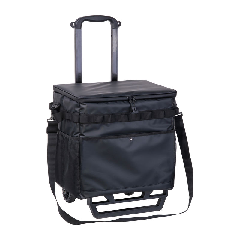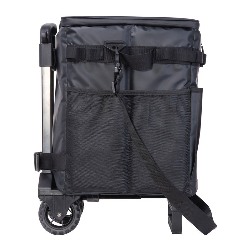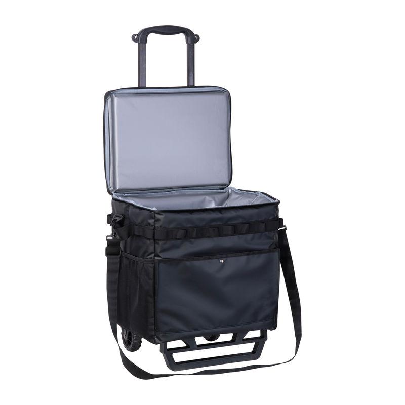 Cărucior frigorific mare, cu o capacitate de 35 de litri și fermoar impermeabil. Geanta frigorifică este detașabilă, iar cadrul se poate plia pentru a economisi spațiu.