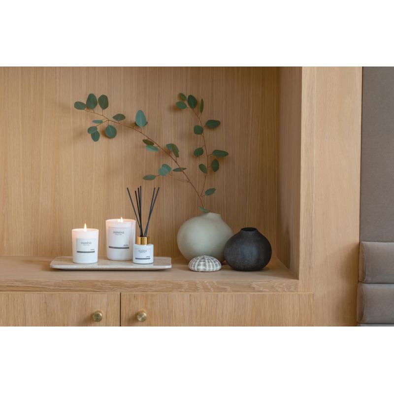 Create warmth and cosiness in your home with this Ukiyo scented candle. Enjoy the subtle jasmin scent that is released. The scented candle comes in an elegant jar with bamboo lid.
