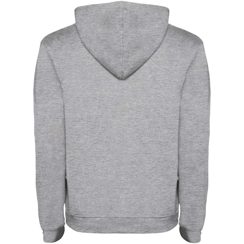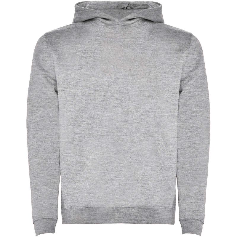Two-colour hoodie with double fabric. Reinforced covered seams in collar and kangaroo style pocket. 1x1 elastane rib in cuffs and waistband. Removable label. The model is 120 cm and is wearing size 5/6.