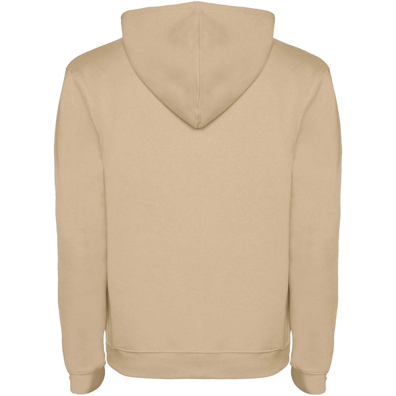 Hoodie with double fabric, adjustable drawcord, reinforced covered seams in collar and kangaroo style pocket. Available in uni-colours and two-tone colours. 1x1 elastane rib in cuffs and waistband. Removable label. The model is 185 cm and is wearing size M.