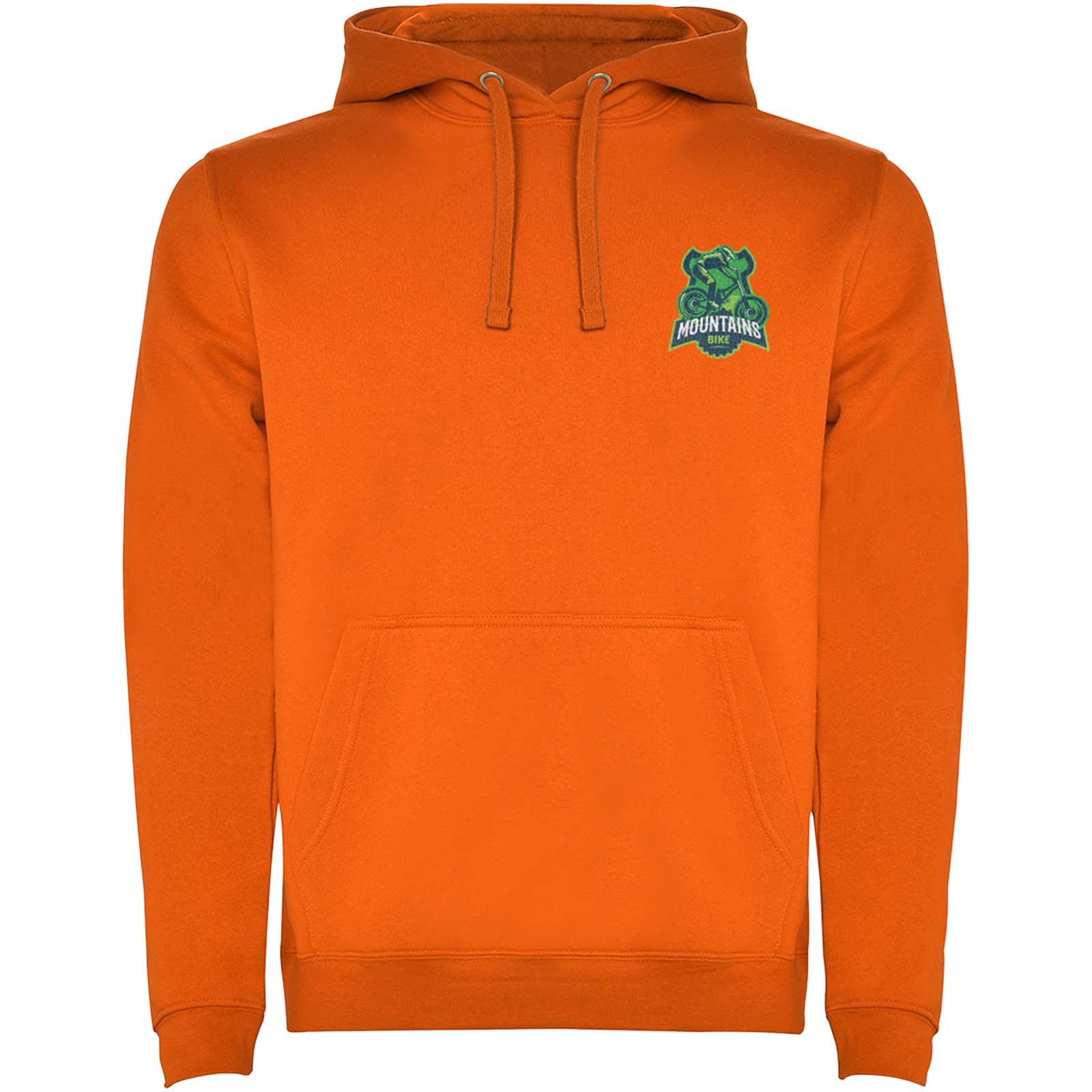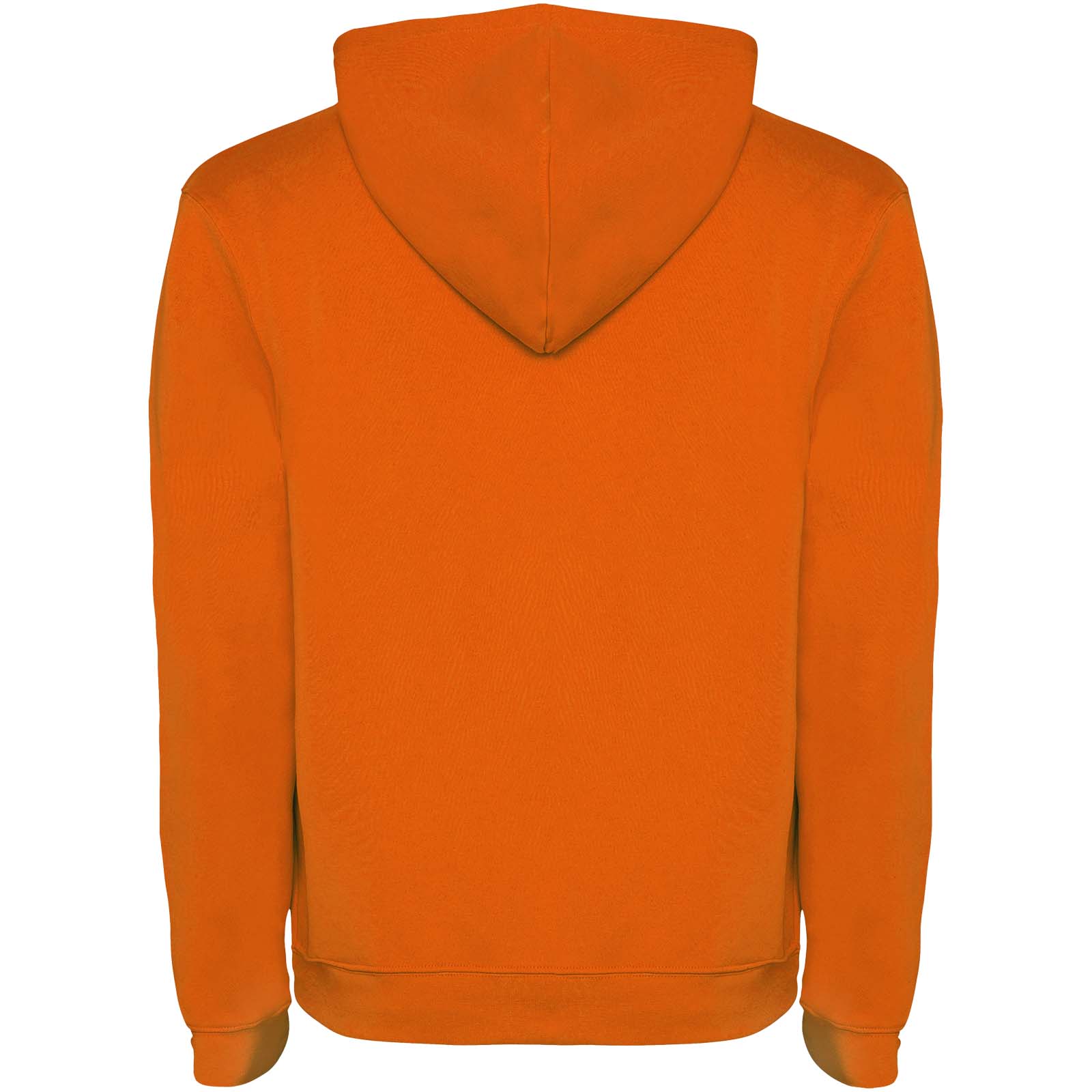Hoodie with double fabric, adjustable drawcord, reinforced covered seams in collar and kangaroo style pocket. Available in uni-colours and two-tone colours. 1x1 elastane rib in cuffs and waistband. Removable label. The model is 185 cm and is wearing size M.