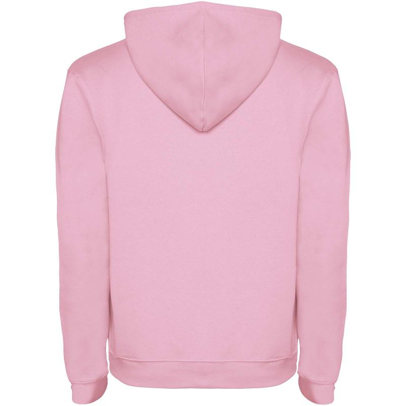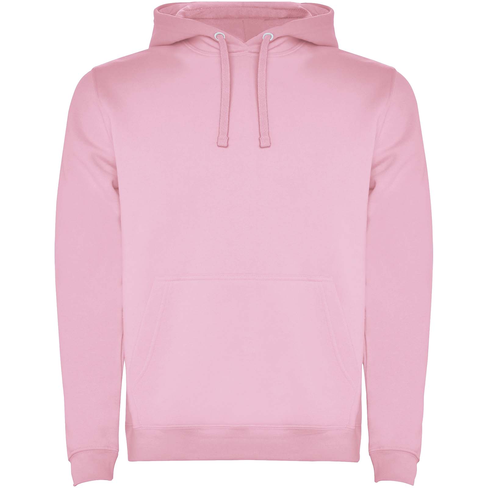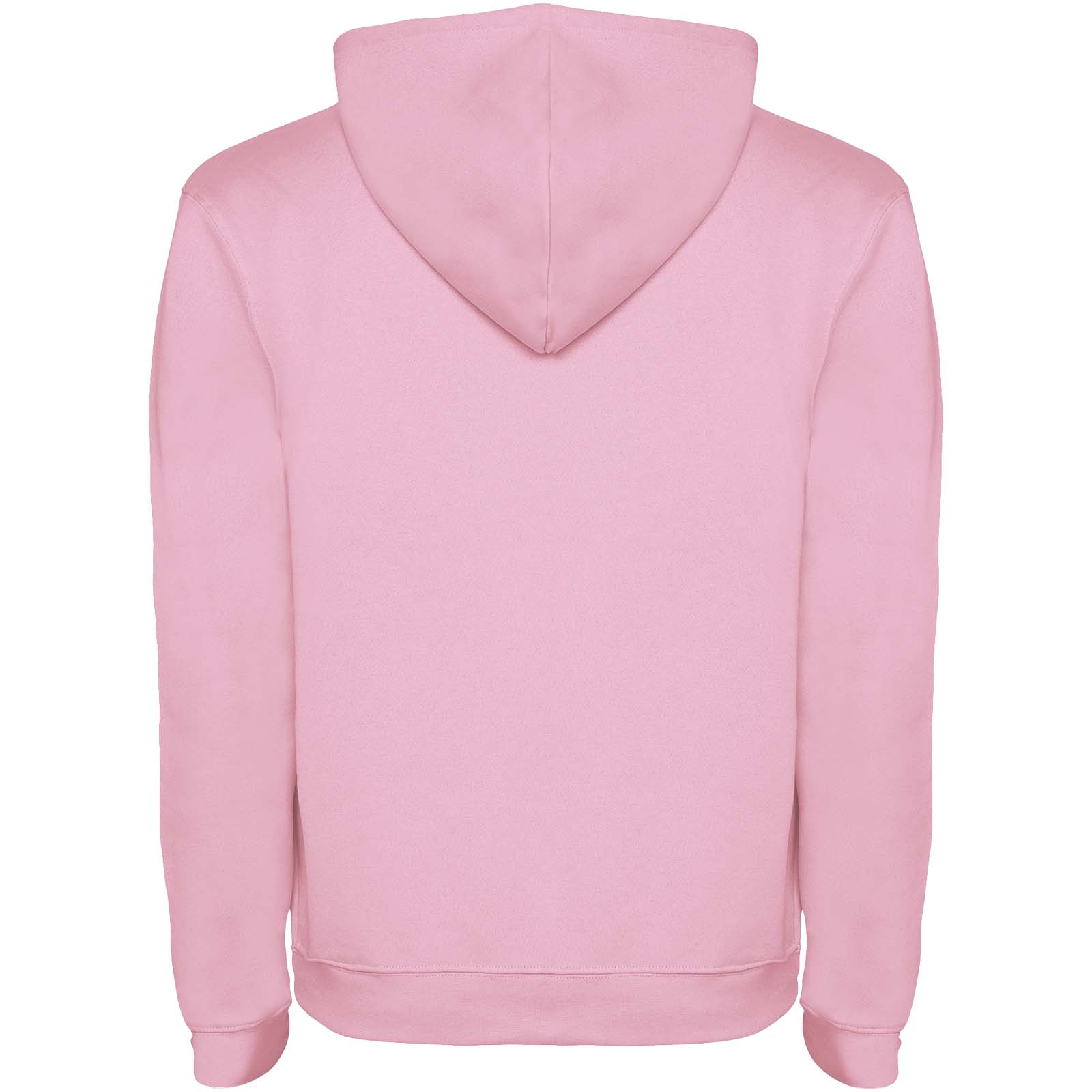 Hoodie with double fabric, adjustable drawcord, reinforced covered seams in collar and kangaroo style pocket. Available in uni-colours and two-tone colours. 1x1 elastane rib in cuffs and waistband. Removable label. The model is 185 cm and is wearing size M.