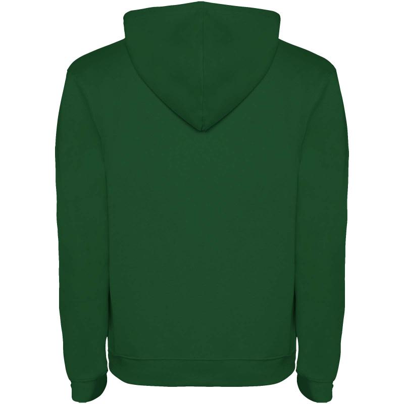 Hoodie with double fabric, adjustable drawcord, reinforced covered seams in collar and kangaroo style pocket. Available in uni-colours and two-tone colours. 1x1 elastane rib in cuffs and waistband. Removable label. The model is 185 cm and is wearing size M.