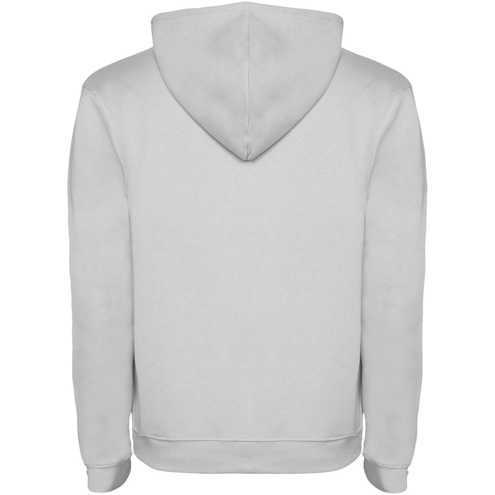 Hoodie with double fabric, adjustable drawcord, reinforced covered seams in collar and kangaroo style pocket. Available in uni-colours and two-tone colours. 1x1 elastane rib in cuffs and waistband. Removable label. The model is 185 cm and is wearing size M.
