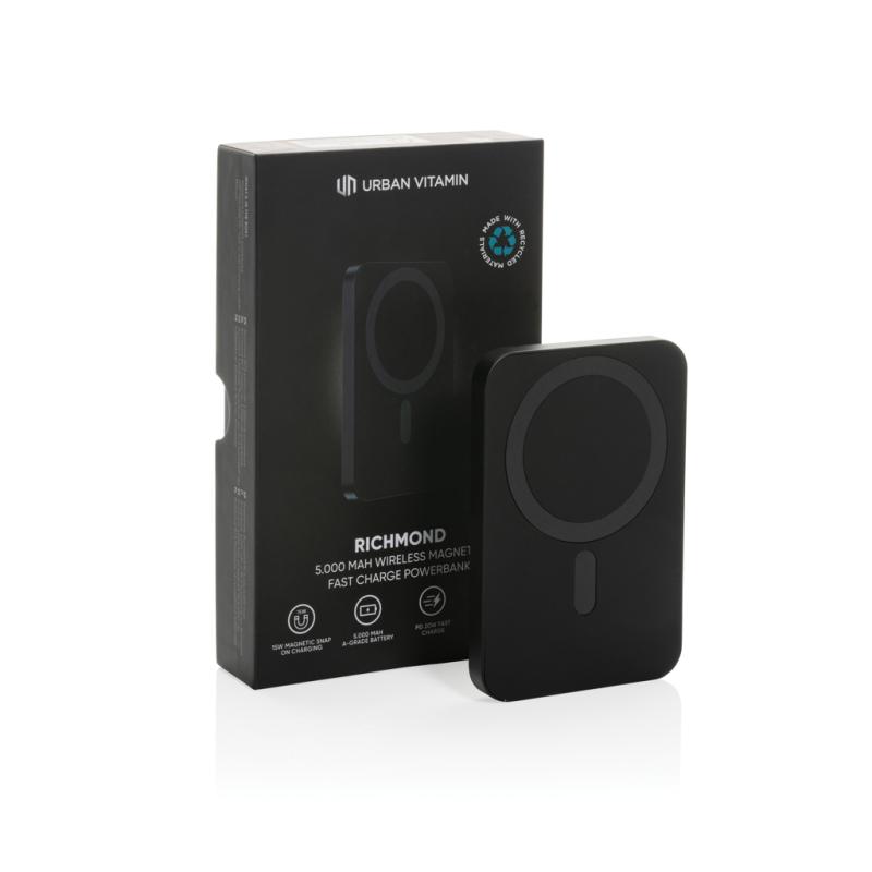 Richmond’s magnetic technology effortlessly snaps onto your iPhone 12 and up, as well as new-generation Android phones, ensuring a seamless connection for lightning-fast 15W charging. Need a quick boost to get you through the day? Richmond supports lightning-speed 20W fast charging via its Type-C port, both for replenishing the powerbank itself and supercharging your device. No more waiting around – get back to what matters most in no time! It couldn't be simpler – just click Richmond onto your phone, and watch the magic happen! Our intelligent design automatically initiates charging the moment it's attached, ensuring your devices are always juiced up when you need them. We believe in quality that endures, which is why Richmond is equipped with a high-quality 5000 mah 100% cobalt battery. This powerhouse lasts longer and performs better than ordinary lithium batteries, giving you reliable, long-lasting power. Made with RCS (Recycled Claim Standard) certified recycled aluminum and ABS.