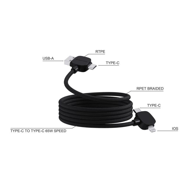 The ultimate 120cm magnetic charging cable for seamless connectivity and unmatched convenience! Say goodbye to tangled cables with Stockton, designed to revolutionise your charging experience. Its magnetic design simplifies cable managment, avoids tangled cables and is portable to bring anywhere. Stockton caters to your on-the-go lifestyle, offering both USB Type-C and USB-A inputs, ensuring compatibility with various devices. With iOS and Type-C outputs, it's versatile enough to charge your iPhone, Android device, or laptop! Stockton isn't just a charging cable; it's your go-to for seamless data transfer, syncing files, photos, and music between devices at lightning speed. With a robust 65W charging capability, it's a game-changer for mobile devices and laptops alike. Stockton is made with RCS (Recycled Claim Standard) certified recycled ABS. Total recycled content: 30% based on total item weight. Urban Vitamin items are made without PVC and packed in plastic reduced packaging