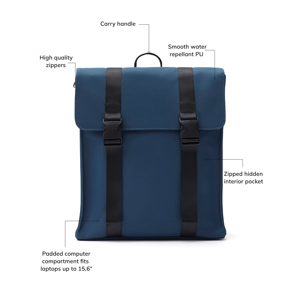 Minimalistic and clean backpack that suits all occasions. The backpack is made of PU-material and has adjustable straps for optimal comfort. The backpack is also equipped with a zipper pocket on one side and a hidden pocket on the back, so you can easily turn your back without worrying about your valuables. Works equally well as a work bag and as a school bag.Suitable for computers with an overall size of 17 inches. Please note that the dimensions of the display are not the same as the dimensions of the entire computer.