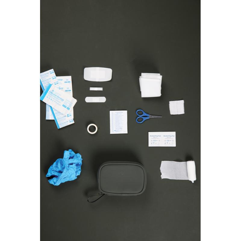 First aid kit from the popular Baltimore series – designed for both everyday use and adventure. Its compact design with a carrying strap makes it easy to bring along, whether in your bag or in the car. Equipped with essential supplies such as plasters, scissors, bandages, gauze pads, compresses, wound wipes, tape, and disposable gloves. Everything you need to treat minor injuries quickly and safely. Features a durable SAB zipper. Certified by RCS (Recycled Claim Standard), RCS certification guarantees that the entire supply chain of recycled materials is certified. The total recycled content is based on the overall product weight. This product contains 23% RCS certified recycled polyester.