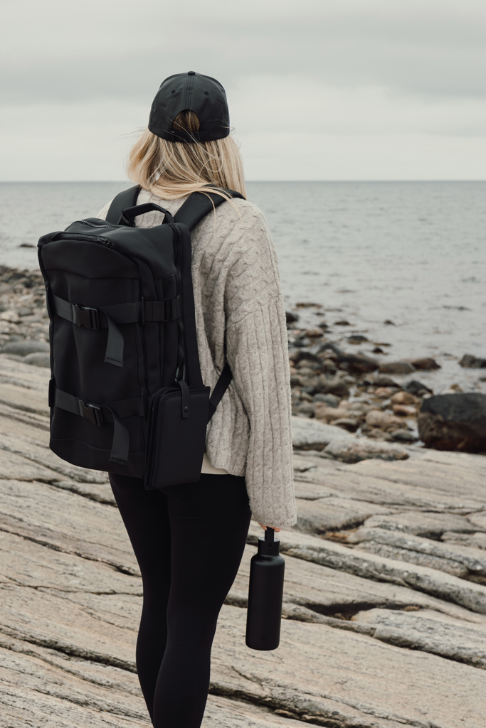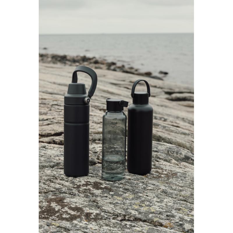 This double wall vacuum bottle, crafted from RCS certified recycled stainless steel, offers both performance and style. Designed with a minimalistic PU handle and black details that capture the essence of Baltimore series. The double walled insulation maintains drink temperatures cold for up to 12 hours, and hot for up to 6 hours, whether you need to stay cool with a chilled drink or enjoy a warm beverage on the go. Not dishwasher or microwave safe, only handwash. Certified by RCS (Recycled Claim Standard), RCS certification guarantees that the entire supply chain of recycled materials is certified. The total recycled content is based on the overall product weight. This product contains 80% RCS certified recycled stainless steel.