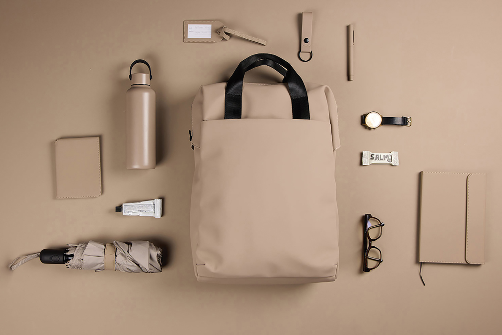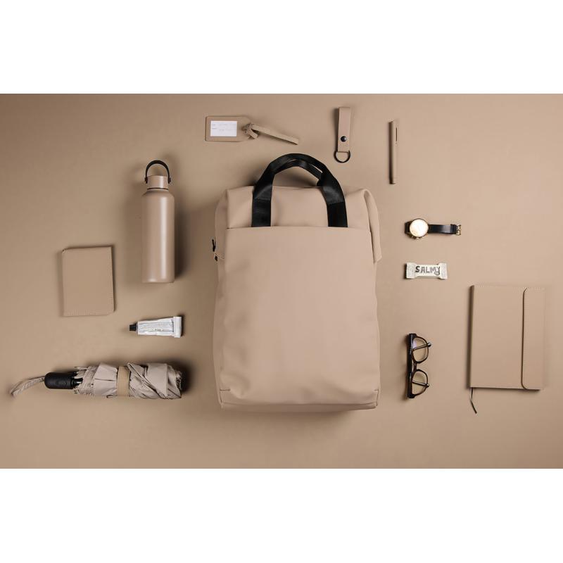 An easy-to-handle bag with a sleek design. Carry it as a tote bag or a backpack. The bag features a wide zippered opening for convenient packing of your laptop and other valuables. A strap on the back allows it to be attached to a trolley for smooth travel. It also includes a large front pocket, an inner pocket, and a practical bottle holder. Certified by RCS (Recycled Claim Standard), RCS certification guarantees that the entire supply chain of recycled materials is certified. The total recycled content is based on the overall product weight. This product contains 19% RCS certified recycled polyester.