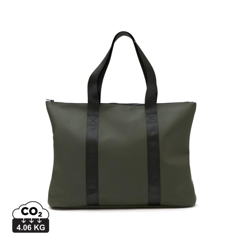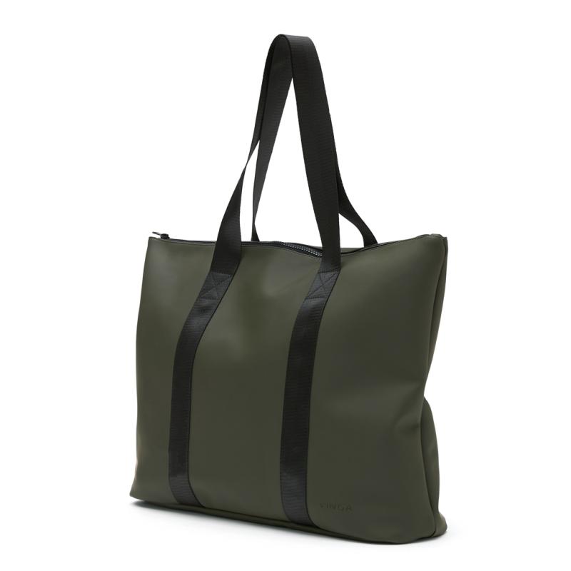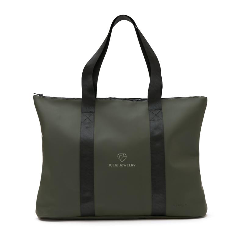 A small, sleek bag made of a lightweight, water-resistant nubuck PU fabric with a stylish matte exterior and a lightweight synthetic fabric interior. The main compartment closes with a zipper. Sturdy handles so you can fill the bag properly.