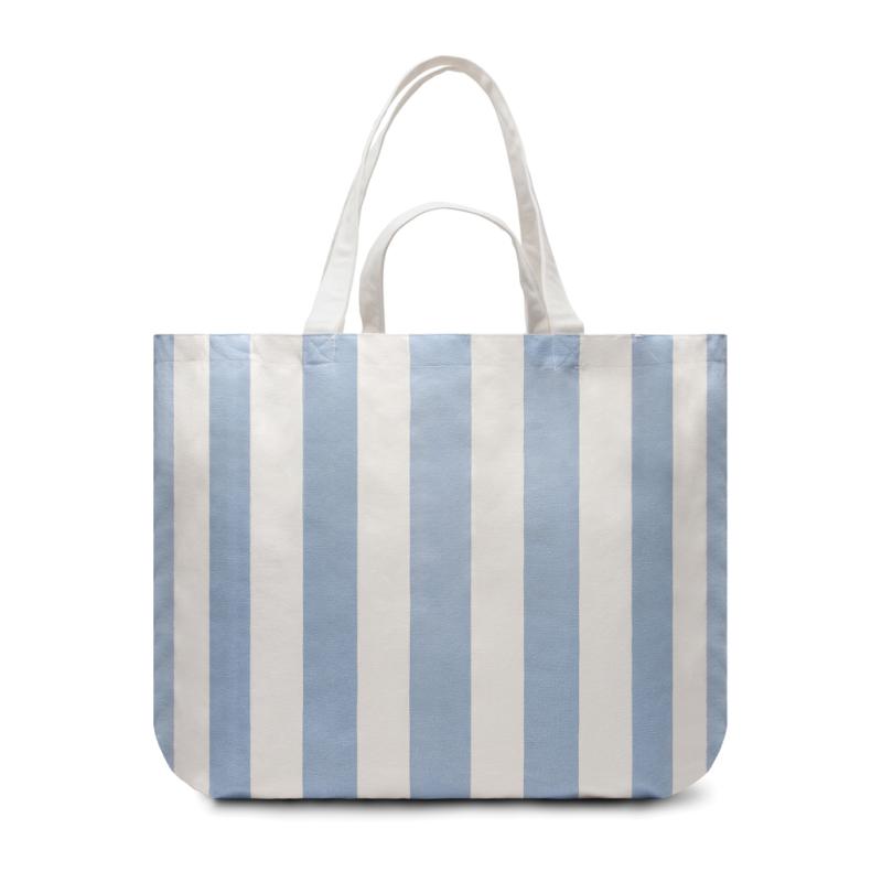 Carry all your belongings with this generous beach bag. This bag offers both shoulder straps and shorter carry handles, making it effortlessly easy to bring along wherever you're heading. Designed with a classic two-coloured striped pattern in 390 GSM canvas. Certified by GRS (Global Recycled Standard), GRS certification guarantees that the entire supply chain of the recycled materials is certified. The total recycled content is based on the overall product weight. This product contains 69% GRS certified recycled cotton and 29% GRS certified recycled polyester.
