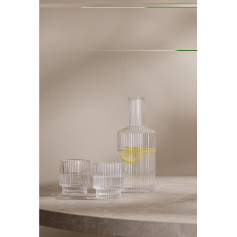 A carafe created with timeless design and classic, elegant lines. Perfect for any occasion where you want to serve refreshing drinks with style. The carafe creates a sophisticated atmosphere at the dinner table or other festive occasions. Ideal for water, juice and other cold beverages. Made of soda-lime glass. The carafe holds 1450 ml and is dishwasher safe. Cold drinks only.
