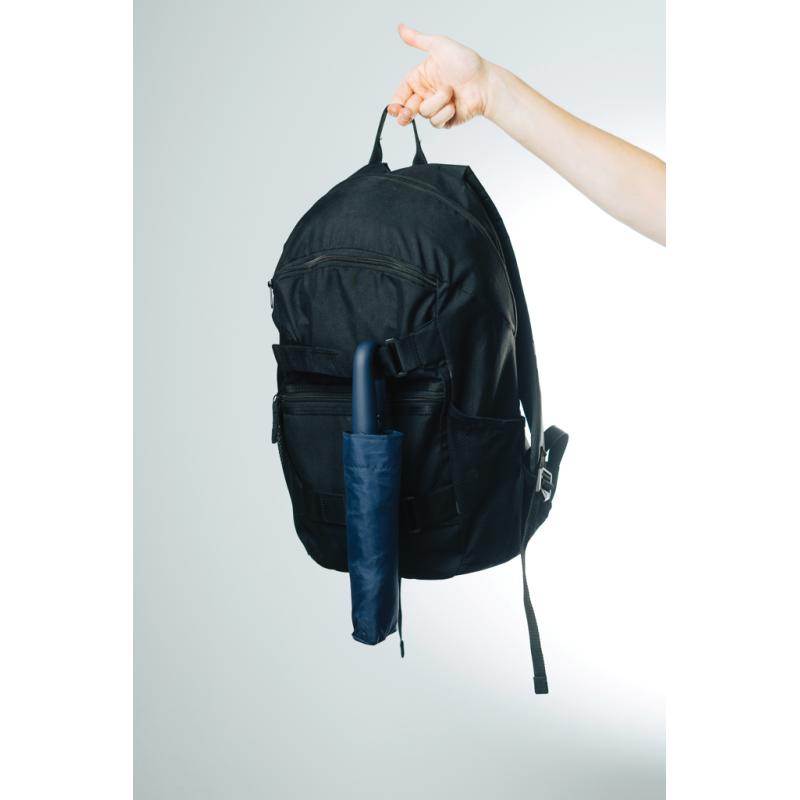 Smart and stylish, this umbrella is made to keep you dry on the go. Easy to carry, this umbrella has an auto-open comfortable grip, a windproof system that keeps the umbrella stable even in strong winds. The unique design with a carabiner handle allows you to hang the Yara umbrella on your backpack. Metal frame, fibreglass ribs with ABS handle. With AWARE™ tracer that validates the genuine use of recycled materials. 2% of proceeds of each Aware™ product sold will be donated to Water.org. Registered design.
